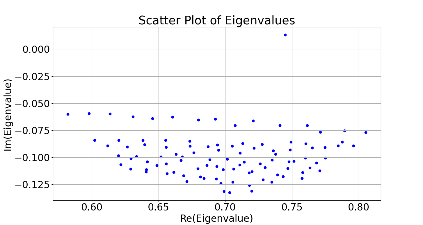 Run the pyhton script PlotScatter.py to plot the computed eigenvalue spectrum:
