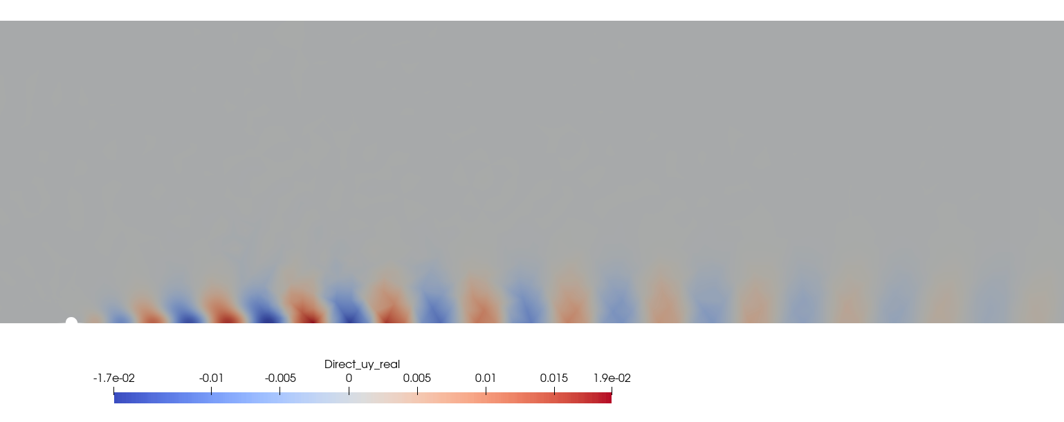 In Figure 1, an eigenvalue with a positive imaginary part stands out. We use paraview to visualize the corresponding real part of the eigenmode stored in Mode_Modal_Direct_Omega_0.745+0.013j.xmf.